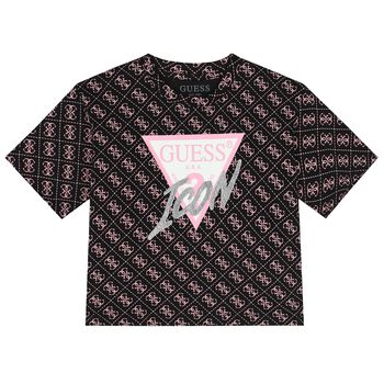شورت بنات بالشعار باللون الأسود و الوردي من جيس. مصنوع من القطن الناعم، ومميز بنمط شعار G الأربعة المطبوع باللون الوردي وحزام خصر مطاطي لارتداء مريح.