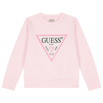 Blue denim jeans for girls by Guess. Made from soft cotton denim. They feature an all-over multicoloured embroidered brand logo pattern and classic four pocket styling. Designed with a pink branded popper and zip fastening, belt loops and an elasticated waist to ensure a perfect fit.
